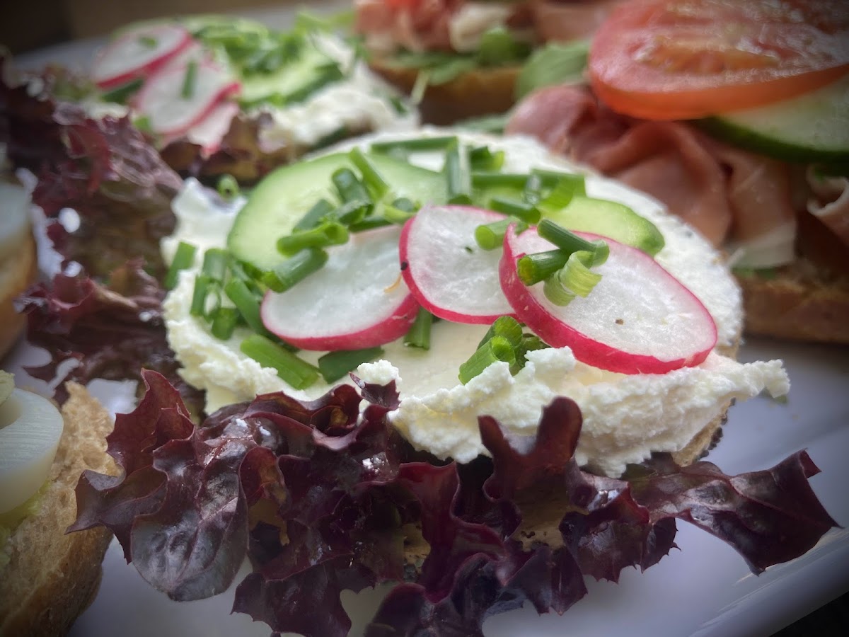 Mit Frischkäse, Kräutern, Rucola, Gurke, Tomate, Sprossen