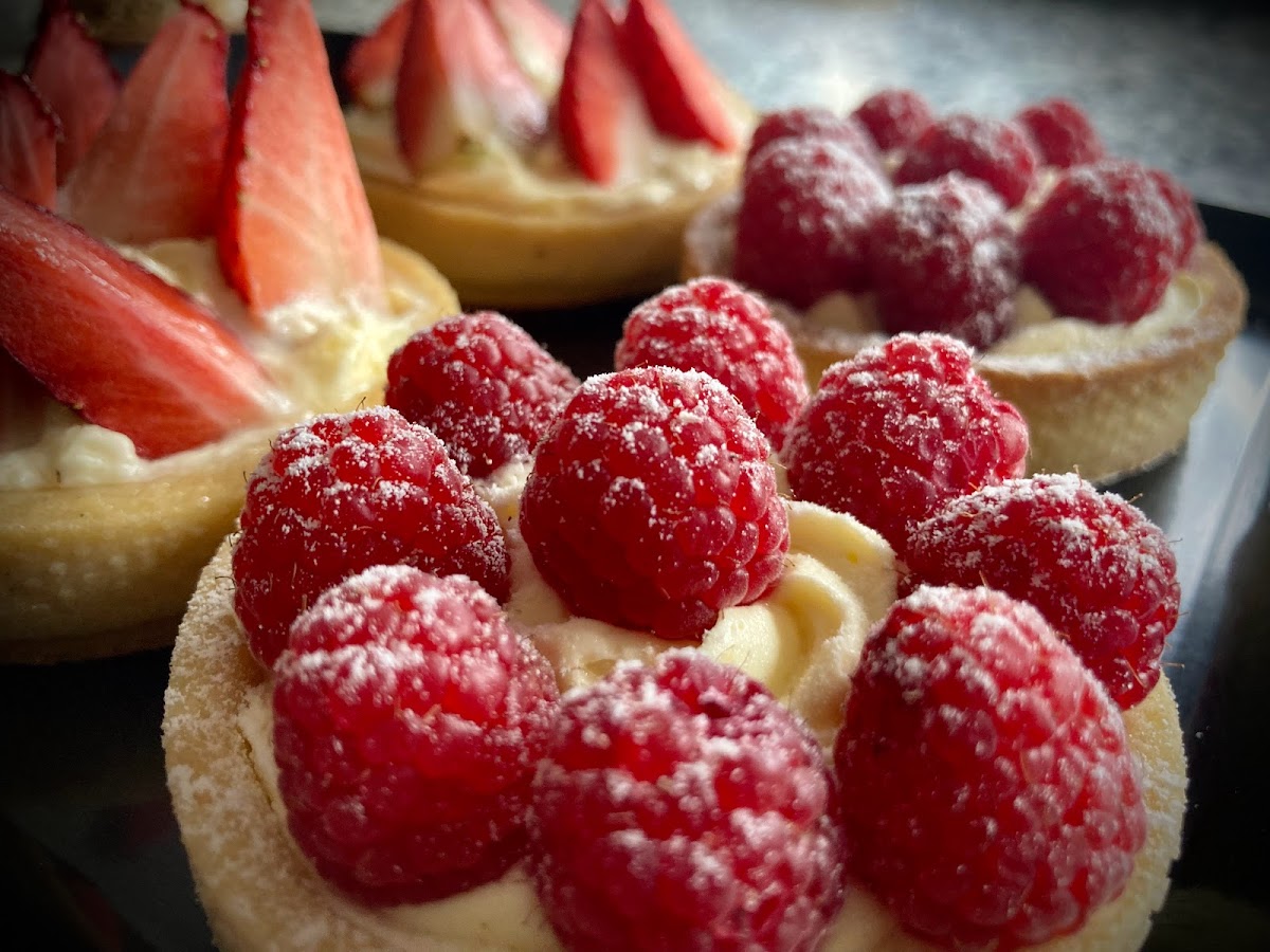 Blätterteig-Teilchen mit Kirschen und Zuckerguss